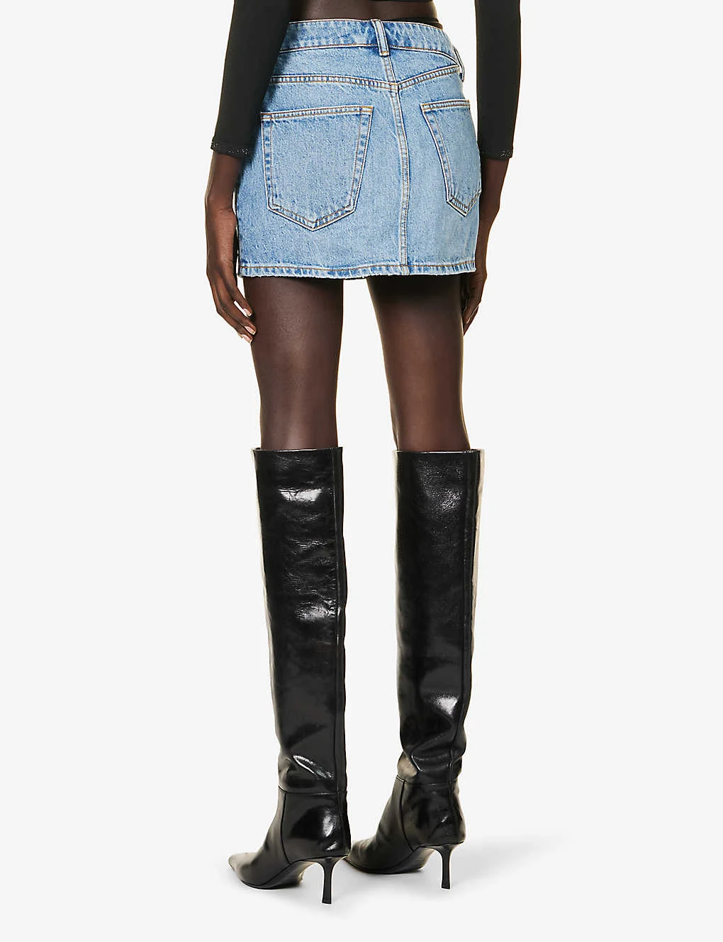 Be the first to review “ALEXANDER WANG Asymmetric-waistband Logo-embellished Denim Mini Skirt” Cancel reply