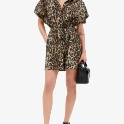 CLAUDIE PIERLOT Joan Leopard-print Relaxed-sleeve Cotton Playsuit