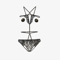 - Regular-fit, round neck, shoulder straps, gold-toned hardware, elasticated waistband, all-over semi-sheer floral lace panels, scalloped trims, open gusset