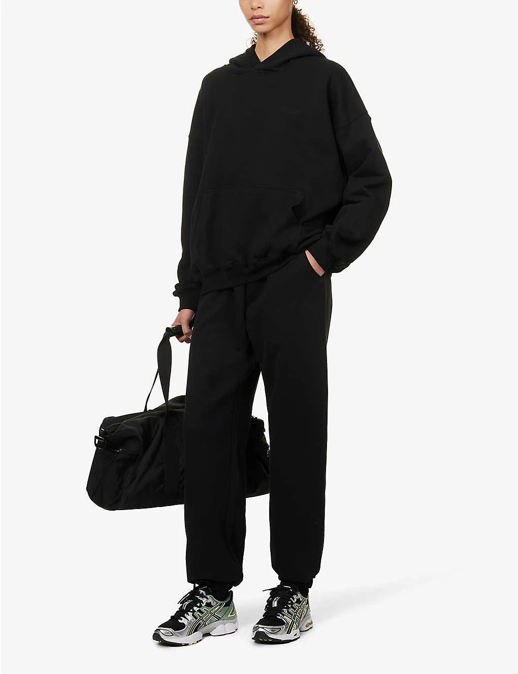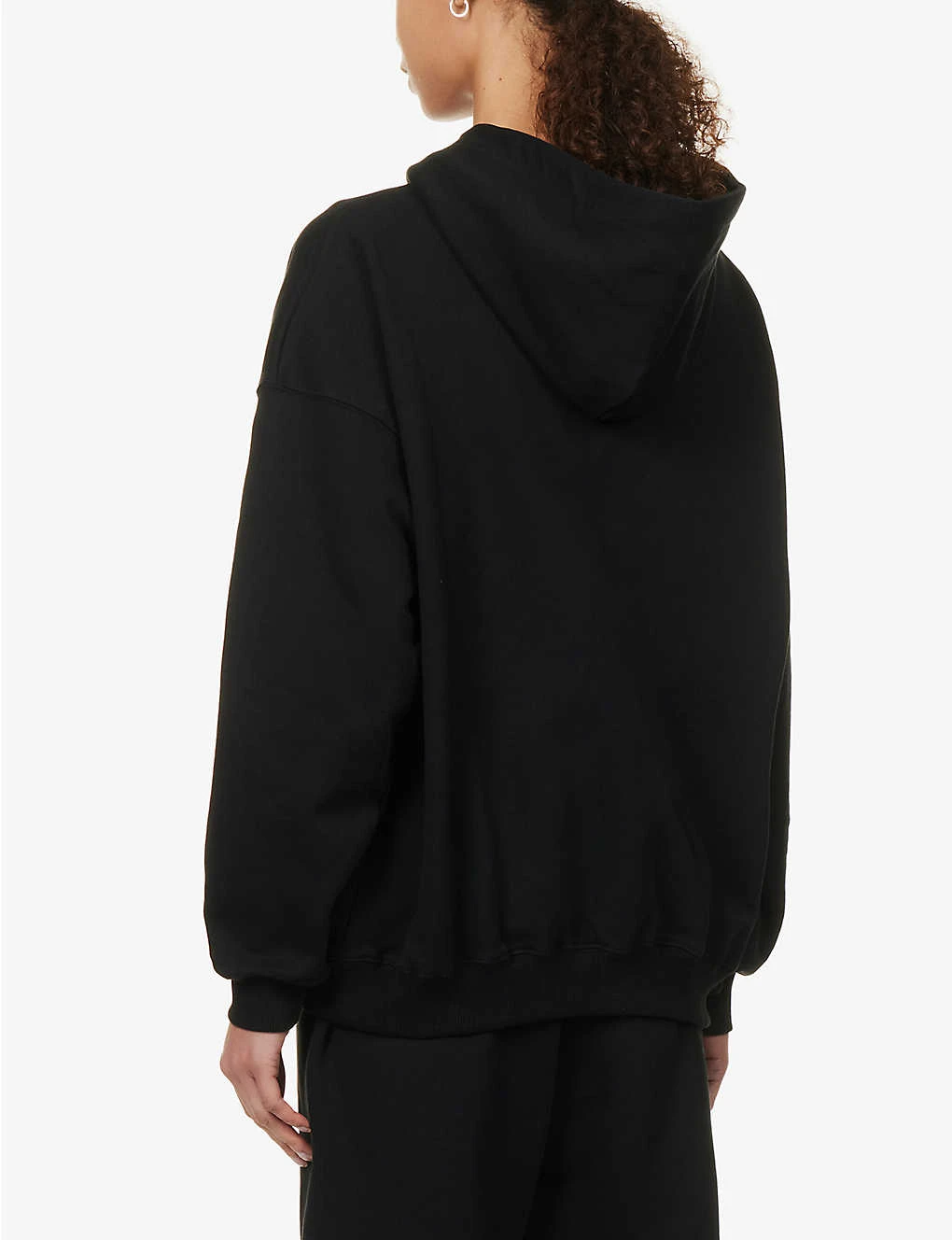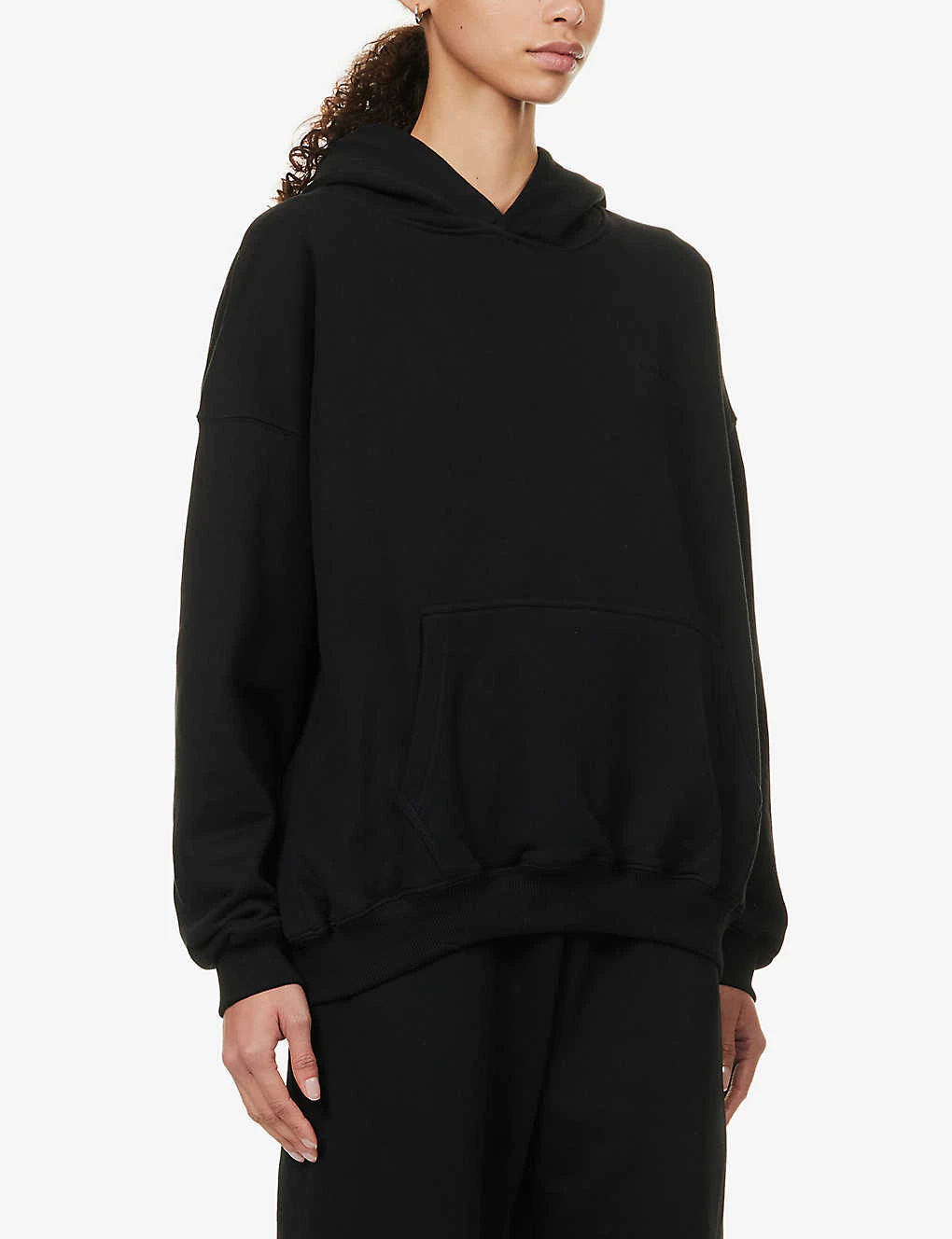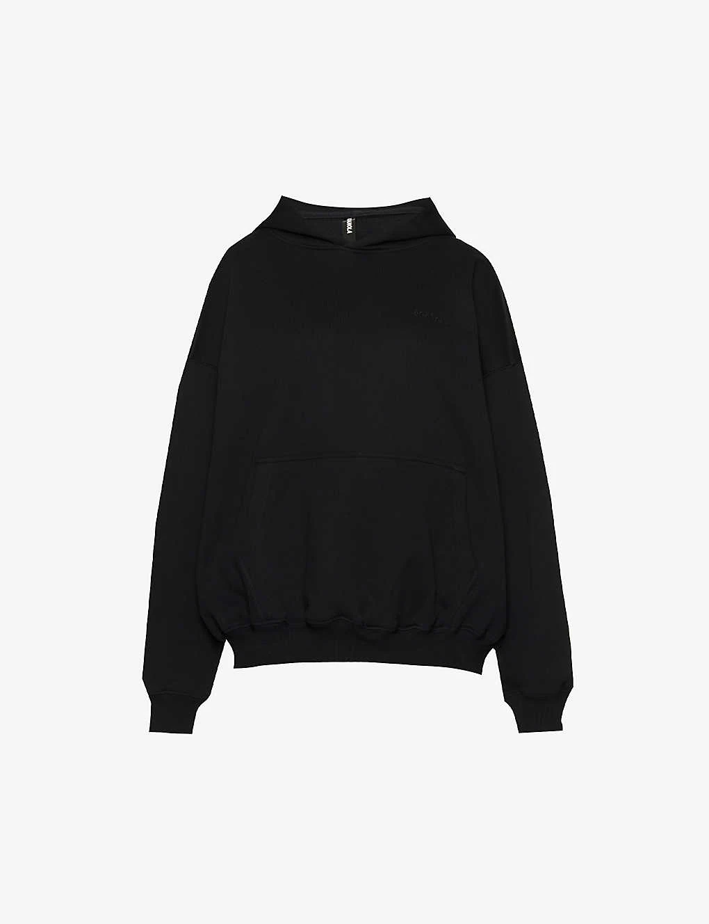 - Oversized fit, hood, dropped shoulders, long sleeves, tonal brand text embroidery at front, kangaroo pocket at front, ribbed trims