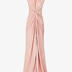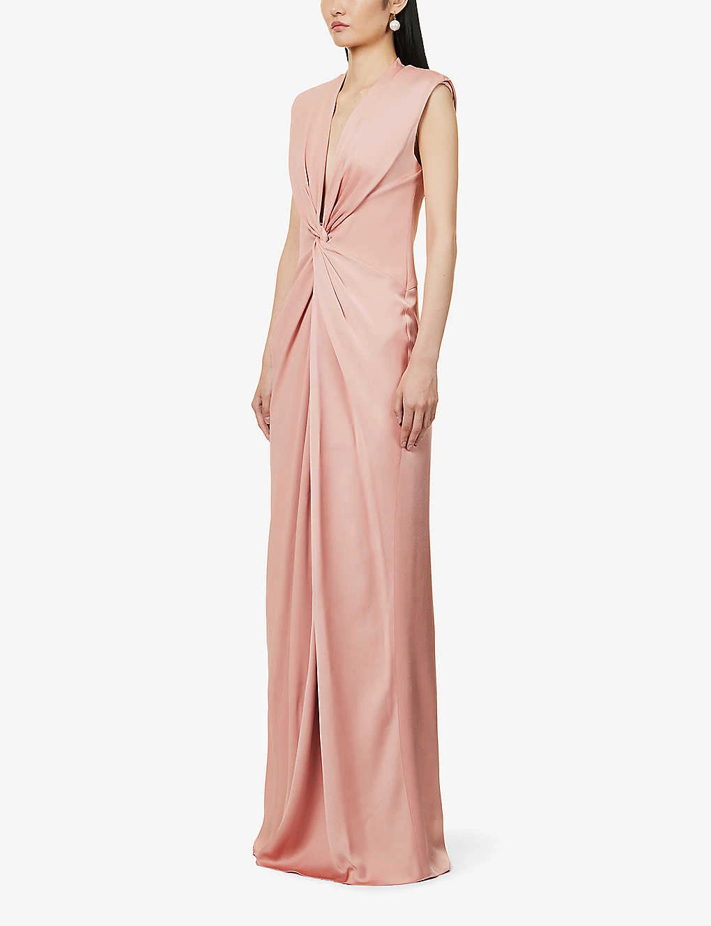 - Regular-fit, deep V-neck, shoulder pads, sleeveless, twist design at front, split at front, fully lined