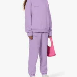 - Relaxed-fit, round neckline, word-embossed, elasticated waistband and cuffs